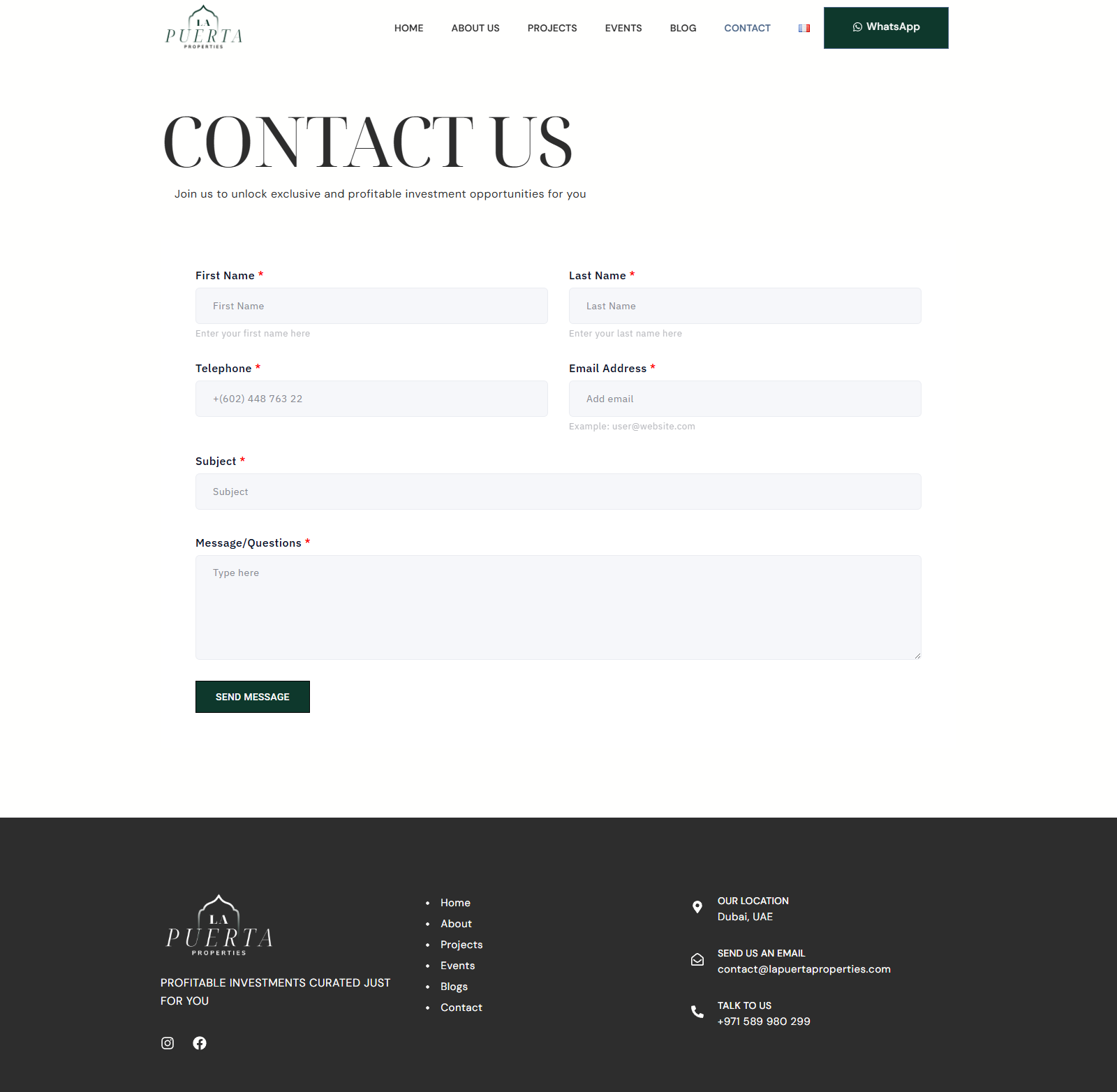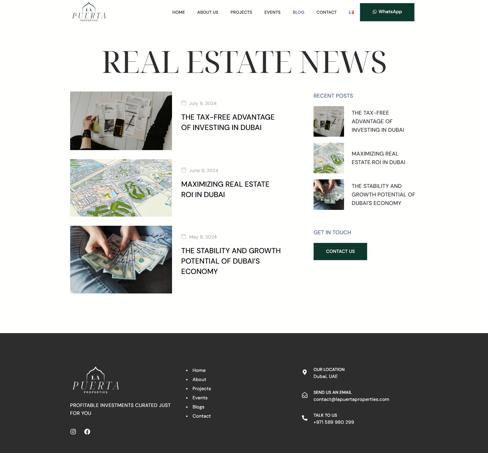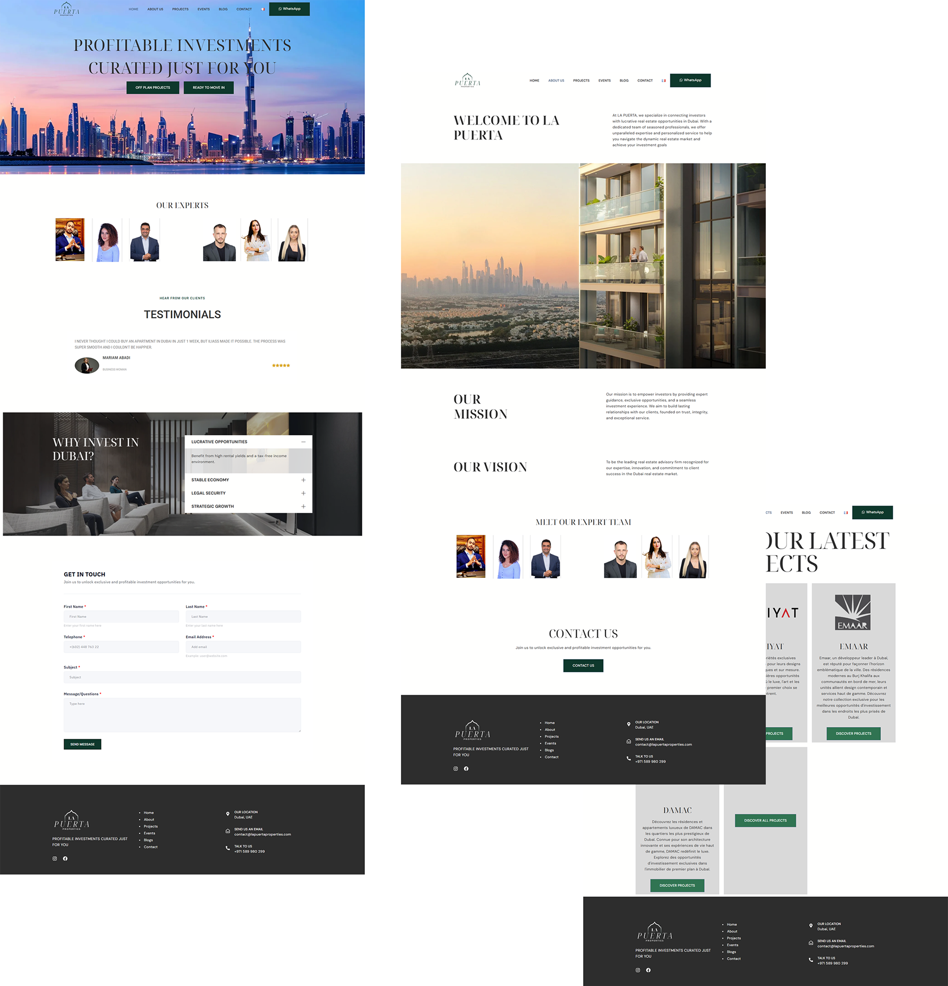 La Puerta Properties est un cabinet de conseil immobilier boutique basé à Dubaï, spécialisé dans les investissements immobiliers sur mesure et à haut rendement. Avec une équipe dédiée à la recherche de développements hors plan exceptionnels , la marque avait besoin d'une présence numérique qui corresponde à la qualité premium de ses offres. Ce projet comprend une refonte complète de l'identité visuelle de la marque et le développement d'un site web épuré et élégant capable de communiquer la confiance, l'expertise et la valeur d'investissement dès le premier coup d'œil.